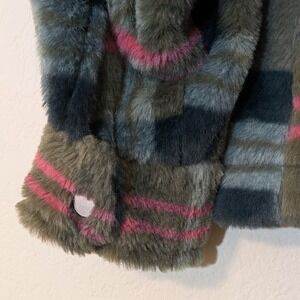 Honeycloth Plaid Jacket Fuzzy Olive Pink Small