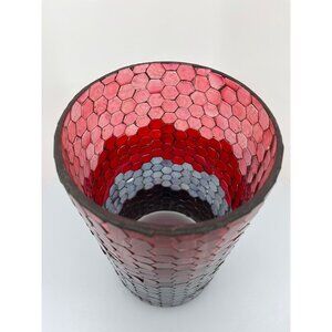 Honeycomb Hurricane Glass Mosaic 10" Tall, Charcoal Grey, Grey, Red, Light Red