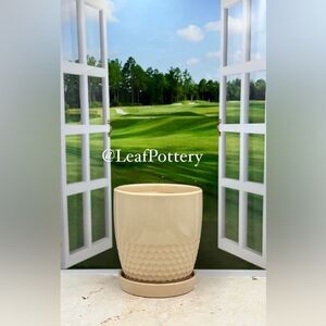 Honeycomb Beige Ceramic Planter Pot with Saucer Attached