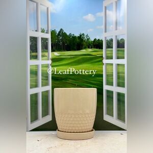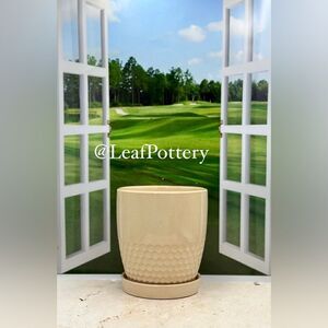 Honeycomb Beige Ceramic Planter Pot with Saucer Attached