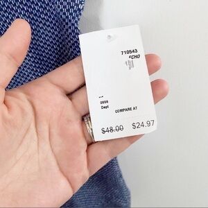 Brand new. Blue. Short sleeve. Round neck. Knit tee. Pullover top. Polyester/cotton. Lightweight.