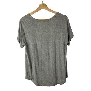 Honeydew Light Gray Ribbed Scoop Neck Short Sleeve T-Shirt M