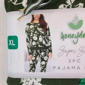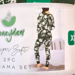 Honeydew Womens Size XL 2-Piece Super Soft Pajama Set Olive Floral
