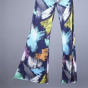 Honeylee Wide Band Flare Leg Palazzos Small Relaxed Abstract Paint Splash Pants