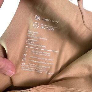 Honeylove LiftWear wireless bra in beige, designed for smoothing support and everyday comfort. Features adjustable straps, seamless construction, and breathable stretch fabric for a flattering fit. Provides excellent lift and shaping without underwire. Bra pads are missing; does not affect wear or support. Excellent like-new condition.