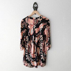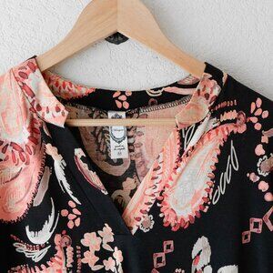 Honeyme Blouse Size Medium Black Pink Paisley Floral Print Tunic Top Made in USA