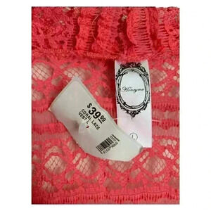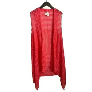 Honeyme NWT Sleeveless Duster Kimono in Coral Size Large Ruffle Lace