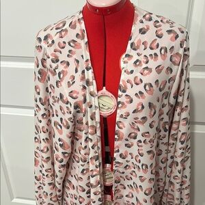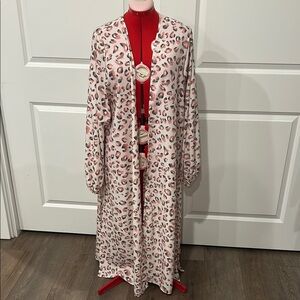 Honeyme Pink Cream Animal Print Leopard Floral Long Full-Length Kimono Size XXL