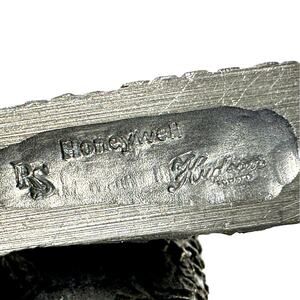 This Honeywell Hudson Pewter Snow Barn Owl Vintage Computer Chip Paperweight is 3" H x 2.25" W x 1.5" D and is in excellent condition! Made in the USA-it's a great paperweight and a delight to look at! Marked on the bottom with Honeywell Hudson RS-add it to your owl or paperweight collection today! # 3786