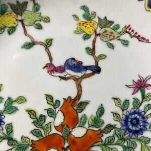 Japanese Hand Painted with nesting birds and floral backdrop on creamy porcelain, beautiful detailed painted edge. Vintage/Antique no chips