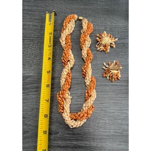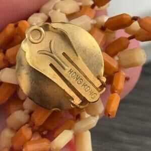 Hong Kong Signed Beige Brown Tan Tones Matching Necklace Clip‎ On Earring Set