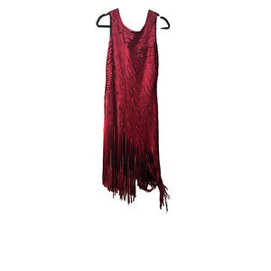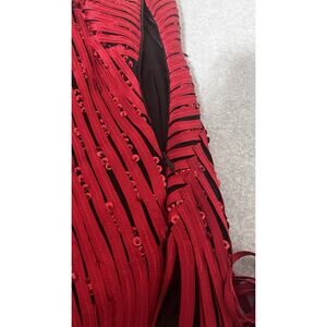 24648 Hong Ni Red Maxi Midi Dress Sequins Asymmetrical Fringe Hem Valentine Party Gala Sexy SZ XL