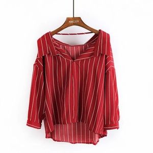 Hong Tai Lang Red & White Stripe Long Sleeves Dip-Back Shirt Women's Size S