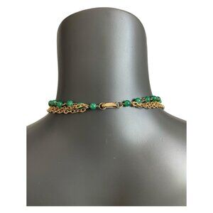 gold tone necklace,green bead jewelry,multilayered necklace,oversized fashion jewelry,statement necklace,pre-loved,evening accessory,layered chain necklace