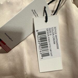 Honor The Gift Beige Button- silk Down Shirt with Embroidered Detail NWT Size S