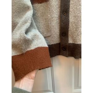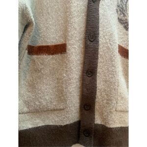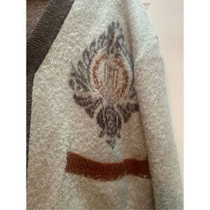 Honor The Gift Cardigan Sweater Crest Logo Knit Brown Trim Oversized