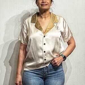 Honor The Gift Cream Notes Camp Shirt Sz M