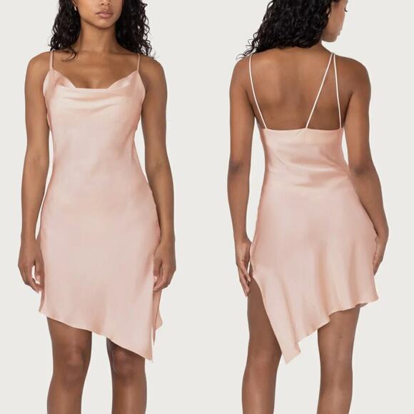 Honor The Gift Silk Slip Dress Sleeveless Cowl Neck Asymmetric Hem Sand NWT M