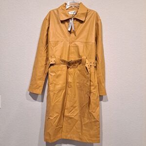 Honor The Gift Vegan Leather Belted Trench Coat Jacket Mustard Yellow sz XL NWT