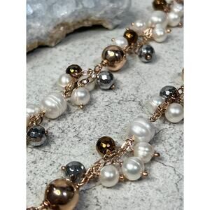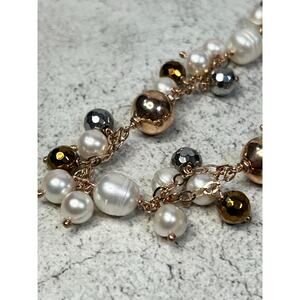 Honora Bronze Italy Pearl Chain Necklace bead grey Gold tone