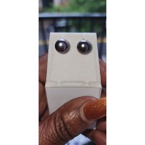 Dark gray pierced cultured pearl sterling silver stud earrings