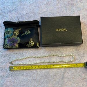 Chic Honora necklace featuring lustrous freshwater pearls. Includes a stylish floral pouch for storage.