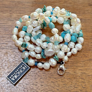 Honora Freshwater Pearl & Turquoise Bead 40” Necklace 925 Sterling Clasp NWT