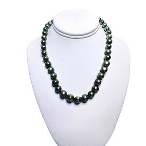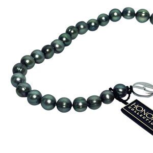 This exquisite Honora necklace features elegant baroque freshwater pearls in a striking graduated green color. Each pearl is carefully selected for its unique shape and lustrous finish, offering a sophisticated touch to any ensemble. The necklace comes with its original box and a beautifully embroidered silk pouch, ensuring secure storage and gifting.