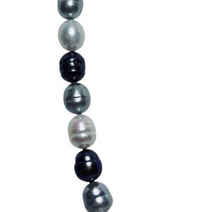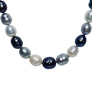 This elegant Honora necklace features a blend of white, gray, and Iridescent teal cultured baroque freshwater pearls, providing a sophisticated touch to any ensemble. The accompanying satin clutch, adorned with delicate floral embroidery, offers a stylish way to store and transport this beautiful piece. Ideal for adding a touch of luxury to your wardrobe.