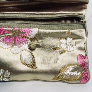 • Satin clutch with zipper - the silk thread on the front has some runs in it. See pictures for details.