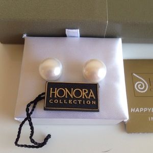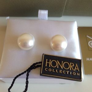 Huge Honora Pearl stud earrings. These are very large pearls, 12mm, but sit perfectly on the earlobe due to happybacks. These have only been worn a couple of times and are in perfect condition. Complete with box, card and tag.