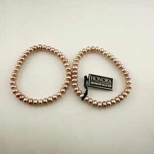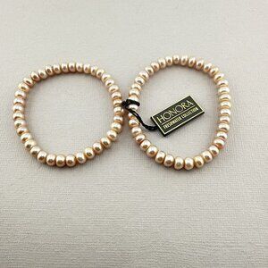 Honora Pearl Bracelet Stretch Set of 2 Pearls Blush Pink Pastel Stack Stackable
