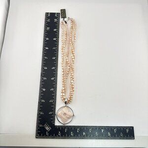 Honora Pearl Necklace Floral Flower Sterling Silver Pink Pendant Triple Strand