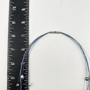 Honora Pearl Necklace Illusion Wire Blue Gray Multi Strand Box