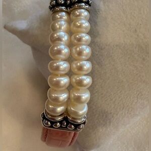 Honora Pink Leather & Pearl Bracelet – Genuine Leather, Silver Accents - EUC
