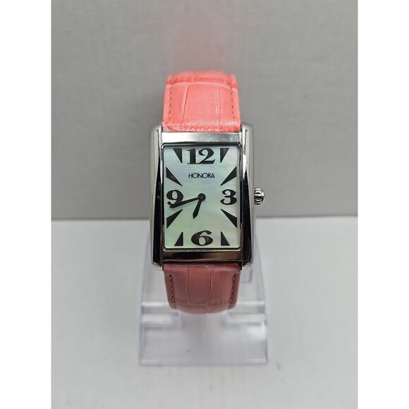 Honora Tank Swiss Mother of Pearl Watch Pink Leather Quartz New Battery Womens