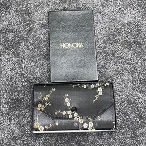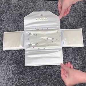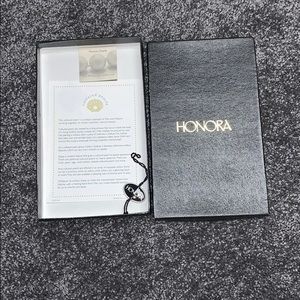 Women’s 15 pearl necklace. 15” long. Clasp is tarnished, comes with pouch and box. As is.