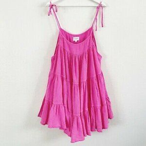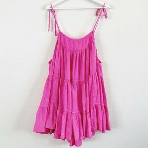 Honorine Bright Pink Cotton Gauze Tiered Mini Dres