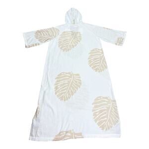 Honorine Cotton Leaf Print Hooded Macadamia White Beige Caftan Small