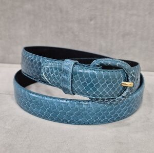 Honors genuine snakeskin belt women's M/L medium/large teal blue velvet lining