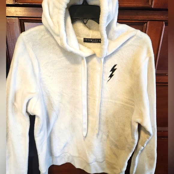 white soft fleece pullover with hoodie
