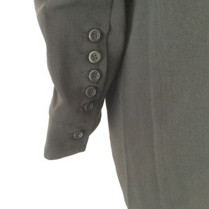 Details: Hooded. Lined. 2-button front placket with 2 slit pockets. Rushed 3/4 sleeves with 6-buttoned cuffs. 7" back slit. Extra buttons included.