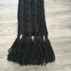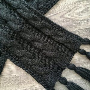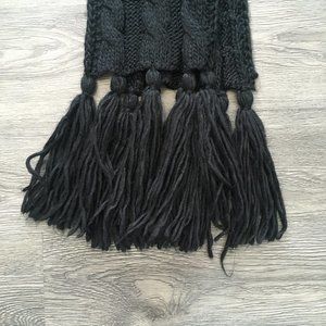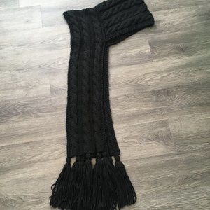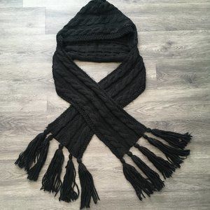 Hooded Chunky Black cable Knit Scarf with tassels, gently used condition. No obvious signs of wear.