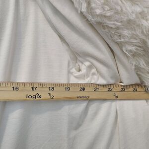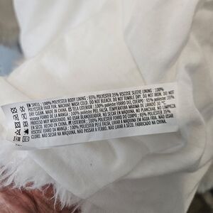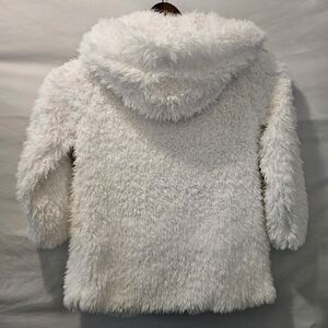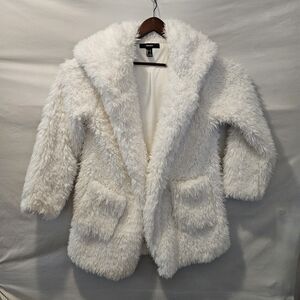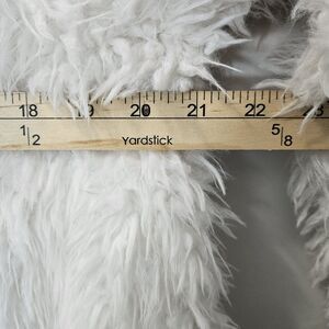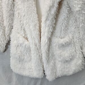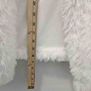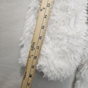 DETAILS: White shaggy faux fur exterior, Large Cozy hood for warmth, Two front pockets, Fully lined interior, open front design model is 5'6 Size small body frame