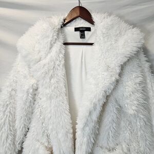 Forever 21 Women Sz. L Faux Soft Fluffy Cardigan Open Coat Shaggy Fur Boho, Coquette, Whimsy Fairy