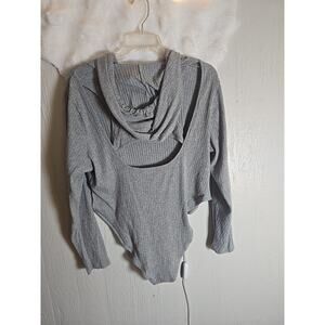 Hooded Henley Baddie Bodysuit Plus 2X Sportycore Indiesleeze Grunge Gorpecore