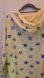 Long-sleeved, hooded nightgown or sleeping robe made from a soft fabric (likely fleece or flannel). It is light yellow in color, decorated with a pattern of colorful stars (blue, purple, and light blue) and spiral designs.