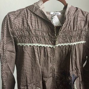 Very cute light jacket, zipper and faux pockets front, thin denim like fabric
