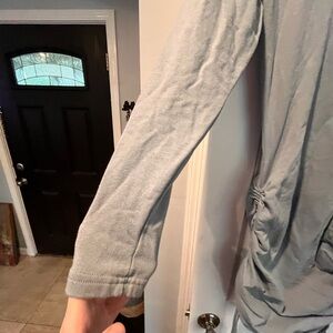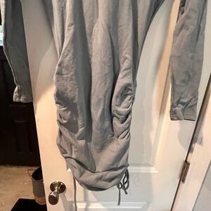 Stylish hooded dress with long sleeves. Features a ruched design for a flattering fit.