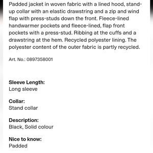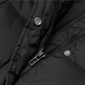 Stylish black hooded puffer coat. Perfect for cold weather.